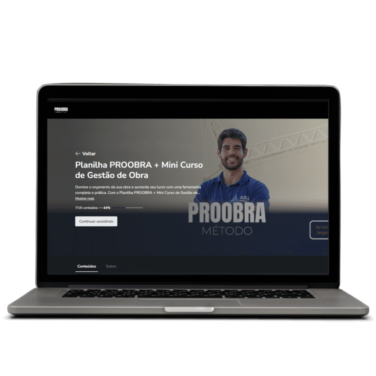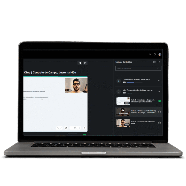 A Planilha PROOBRA vem com vídeo aulas curtas e diretas, que mostram exatamente como usar cada função de forma prática, sem enrolação. Além do Mini Curso PROOBRA que irá elevar seu nível!